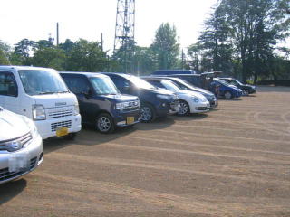 7時30分前に到着しましたが、狙っていた駐車場は満杯でその駐車場を通って未舗装の野球場に駐車です。