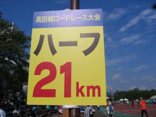 陸上競技場入り口に21キロ看板がありました。