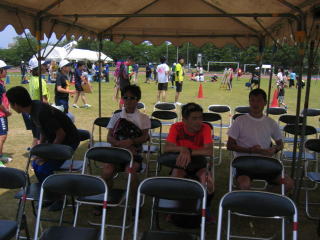 テント内で50歳以上の表彰式を待つ入賞者です。
