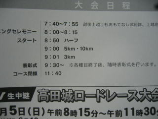 ハーフは午前8時50分スタート、電車で行く方法も調べましたが、始発で行っても8時20分高田駅着なので諦めました。
