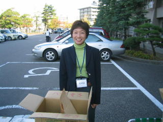 にゃーさんが大会役員、やさしい笑顔で出迎えてくれます。