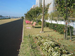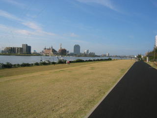 信濃川堤防のコースをゆっくり走ってみます。
