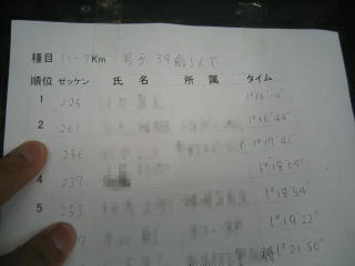 ハーフ男子39歳以下、261番疾風さん2位入賞、1時間16分44秒。