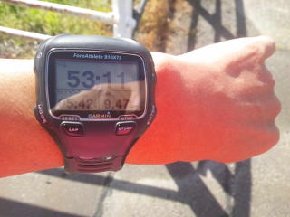 10キロ55分、キロ5分台で行けています、今のところ好調です。