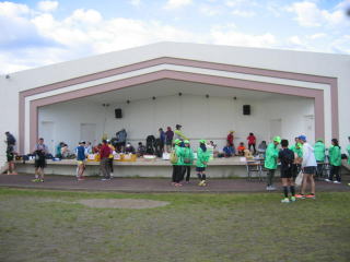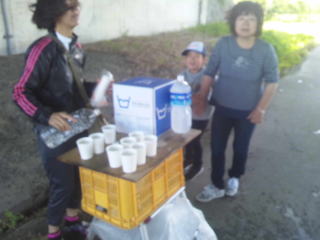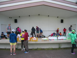 高速道路下の12キロ第一エイドです、ボッランティアの皆さんありがとうございます。