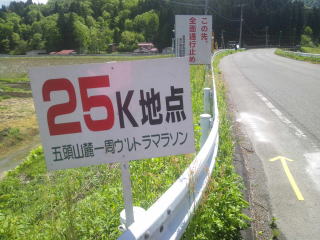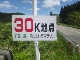 そのちょっと先に30キロ看板、3時間2分位でキロ6分を切れなくなってきました。