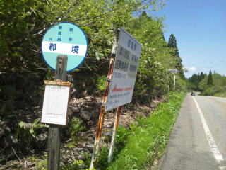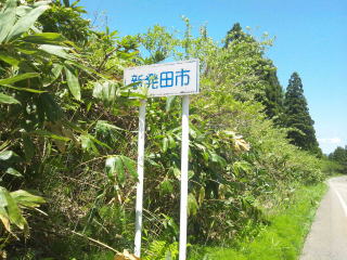 ゆるく登って頂上、頂上で津川から新発田に変わります。