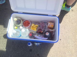 4カ所のエイドに運ぶコンテナは満杯です。