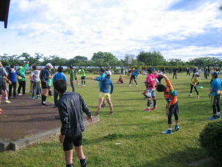 もうほとんどのランナーが集合しています、不本意な遅い到着、すぐに説明会の時間です。