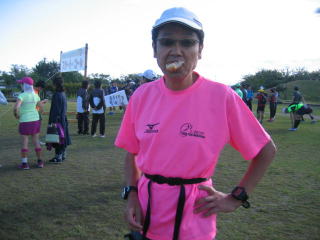 WEB練習日記のリキさんマッコリさんはチームバナナTシャツ、姫ちゅは例年通りの交通事故対策の目立つ蛍光ピンクTシャツです。