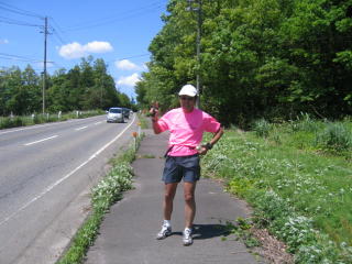 ゆるく登っています、調子悪い時はこのゆるい坂すら登れませんでしたが今年は大丈夫です。