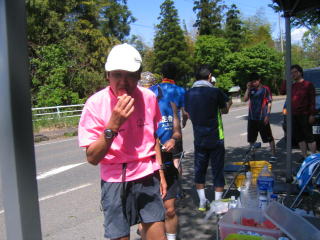 65キロ手前に私設エイド、こちらでもスイカをいただき、あと5キロです。