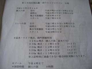 当日頂いた日程表、個人の部は午前7時スタート、制限時間は9時間です。