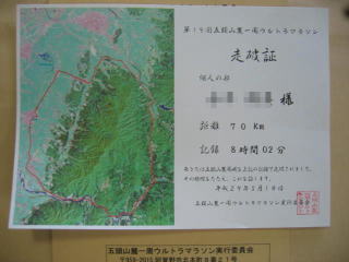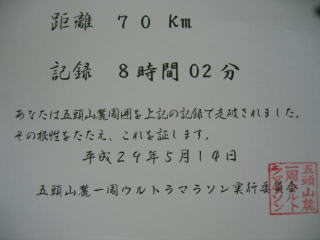 五頭70キロのベストは6時間33分、来年もこれを目指してきっとエントリーするのでしょう!?