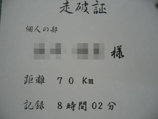 2日後の火曜日、早速「走破証」が郵送で届きました。