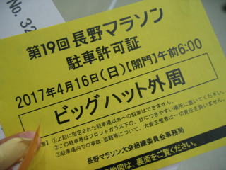 駐車許可証は「オリオン機械」を渡されましたが、他のランナーは「ビックハット外周」に変えてもらっていました。