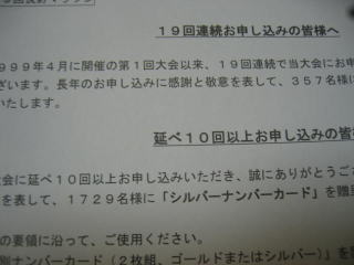過去全てエントリーのゴールドナンバーカード357名、10回以上でシルバーナンバーカード1729名だそうです。