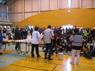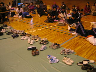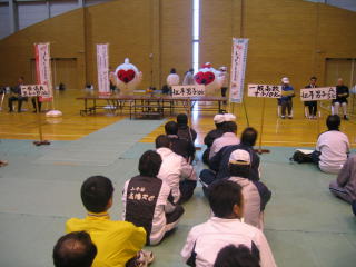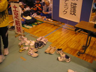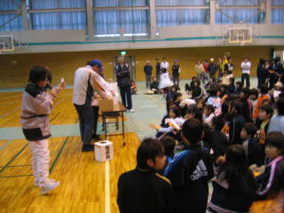 お楽しみ抽選会はゼッケンを持って、番号を呼ばれるのを待ちます。