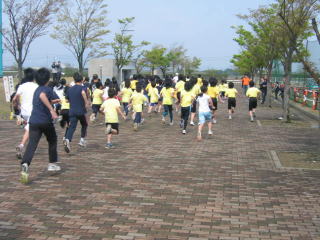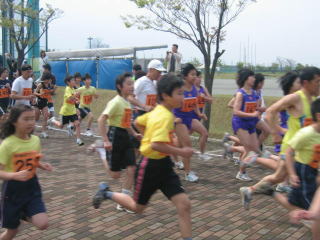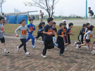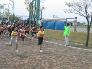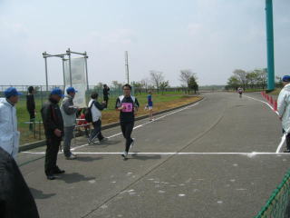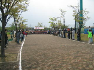 多目的競技場を1周してくると、やはり大人、中学生が速い。