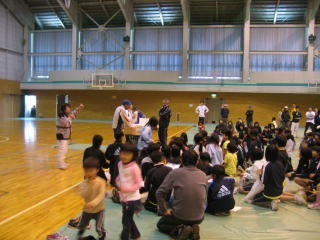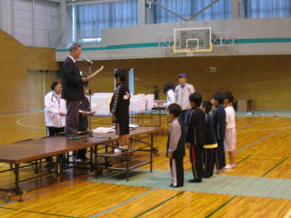 小学生の前に中学生が並びます。