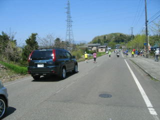良い天気で暑いです、欲を言えば2.5キロおきに給水が欲しいところです。