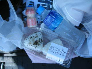 ゴール後にいただいたおにぎり2個、ヤクルト、アクエリアスです。