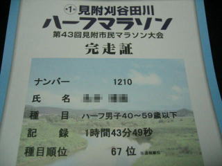 タカジュンさんゴール、ハーフ完走お疲れさまでした。