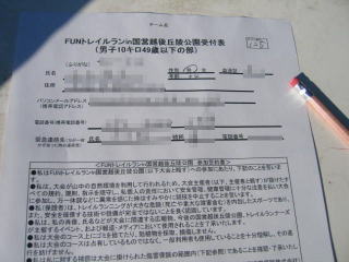 パウチされ、ゴムひもの付いたナンバーカードなどをもらいます。