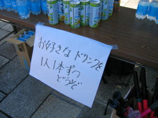 ゴール後、クリーム乗せクッキーやマシュマロ、バナナ、お茶、緑茶のサンプルなどをいただきました。