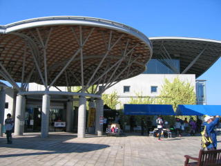 立派な施設、大きくて綺麗な建物もあります、通称?「大けやき」前がステージです。