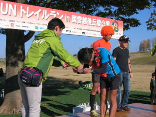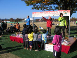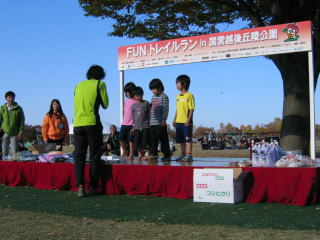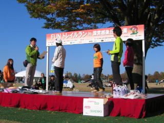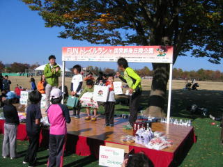 表彰式が始まりました、4キロ小学生、男女別です。