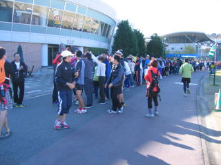 10キロの受付のみ、ランネット事前申込の列と、当日申込の列があり、だいぶ混んでいます。