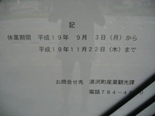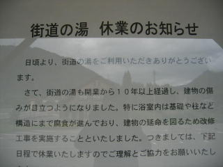 手前の街道の湯は平成19年9月3日から11月22日まで改修工事のためお休みです。
