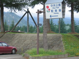 岩原温泉、レジャープールオーロラの脇を通って中央公園駐車場に戻りました。