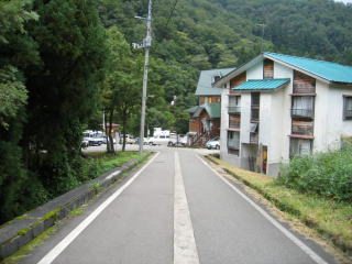 川の左側には岩原ゴンドラが見えますが、直進、下ると砂利道です。