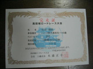 平成20年6月8日、上越市の「2008高田城ロードレース」のハーフに参加しました。