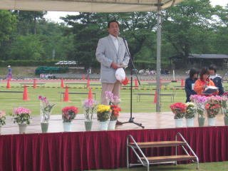 上越市長、招待選手のNTT西日本の大越直哉選手です。
