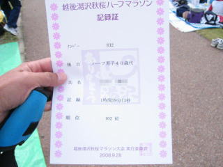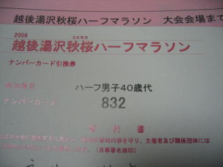 平成20年9月28日 湯沢町の「2008越後湯沢秋桜ハーフマラソン大会」のハーフに参加しました。