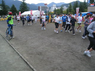 ウォーミングアップをかねて500mのギャラリーランに参加します。