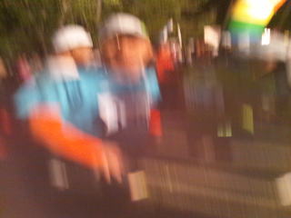 超ピンボケですが、青いWEB練習日記Tシャツを着たリキさんと、リキさんがトイレに行く10キロ位まで一緒に行きました。