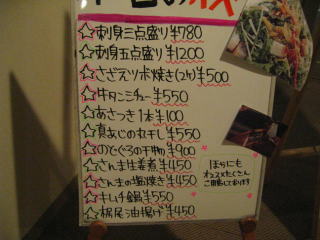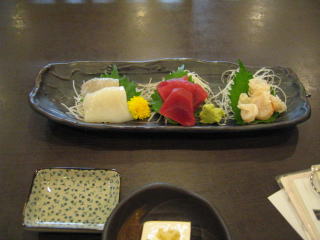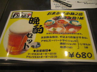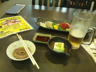 まずは「晩酌セット」680円、「刺身三点盛り」780円。