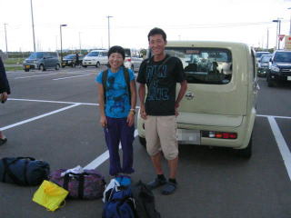 偶然会ったわらびぃーず亜由美ちゃんも宿泊、二人で買出しに行こうとしたら、駐車場で疾風さん夫婦にもお会いしました。