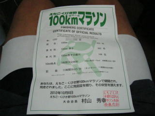 平成24年10月6日(土) 上越市の「第9回 2012えちご・くびき野100kmマラソン」の100キロに参加しました。