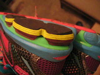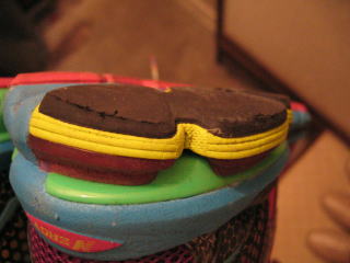 右足かかとはほとんど黒いゴムがないくらいに減っています、ターサーではかかとゴムが全てなくなりそうです。