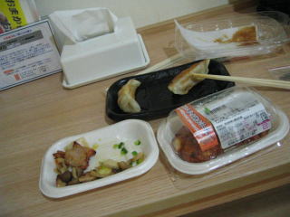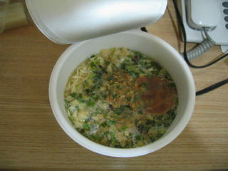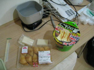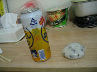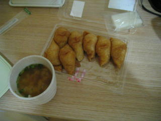 予定通りの持参したカップ麺とお餅2個、イオンで買った稲荷すしで朝食です。