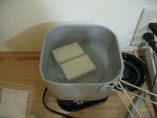 お餅を煮ている、愛用しているハワイなどで愛用しているラーメンポットです。