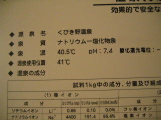 源泉名は「くびき野温泉」、泉質は「ナトリウム−塩化物泉」です。