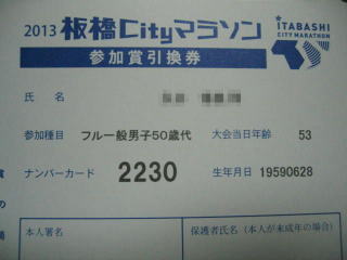平成25年3月24日 東京都の「2013板橋Cityマラソン大会」のフルマラソンに参加しました。
