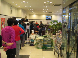 会場のトイレの長蛇の列が見えます。