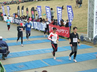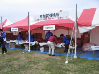ゴールしてから手荷物をもらい、参加賞引換所に向かいます。